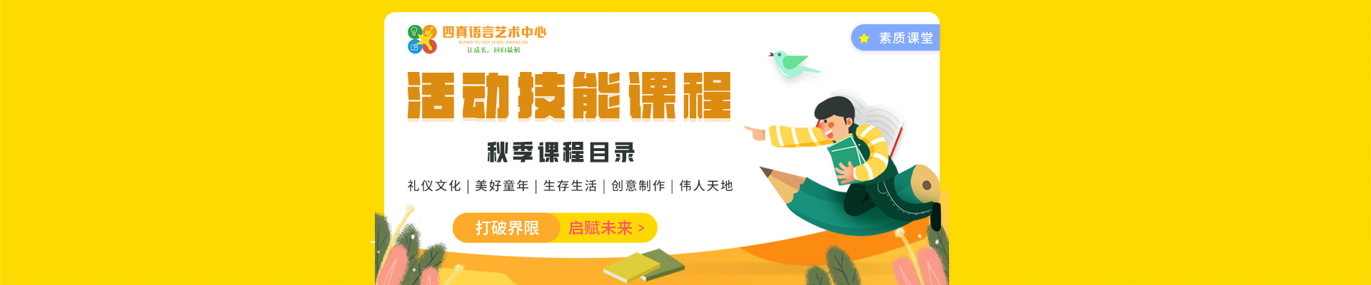 通过全新的文化、艺术素质课程立足培养孩子成为健康、快乐、真实有责任心、有文化的普通人,为孩子的终身成长奠定厚实的人文基础!